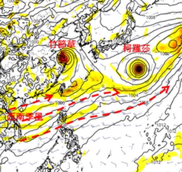 氣象專家在最新分析中指出,歐洲模式(ECMWF)顯示,從今天到下週一(4日)期間,台灣將持續受到西南季風影響,尤其是迎風面的中南部地區,將會出現連續性的降雨,並可能帶來災害性的強降雨。
