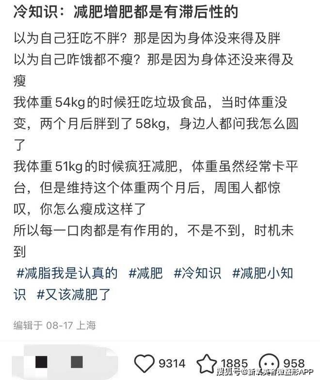 不知道有沒有姐妹在某書上刷到一條這樣的熱帖,說「不論是減肥還是增肥都是有滯後性的」