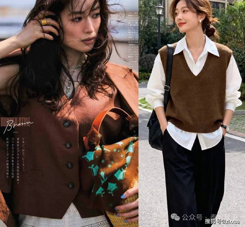 比如V領設計的栗子色針織馬甲,這種領口穿起來顯瘦的效果會更強。