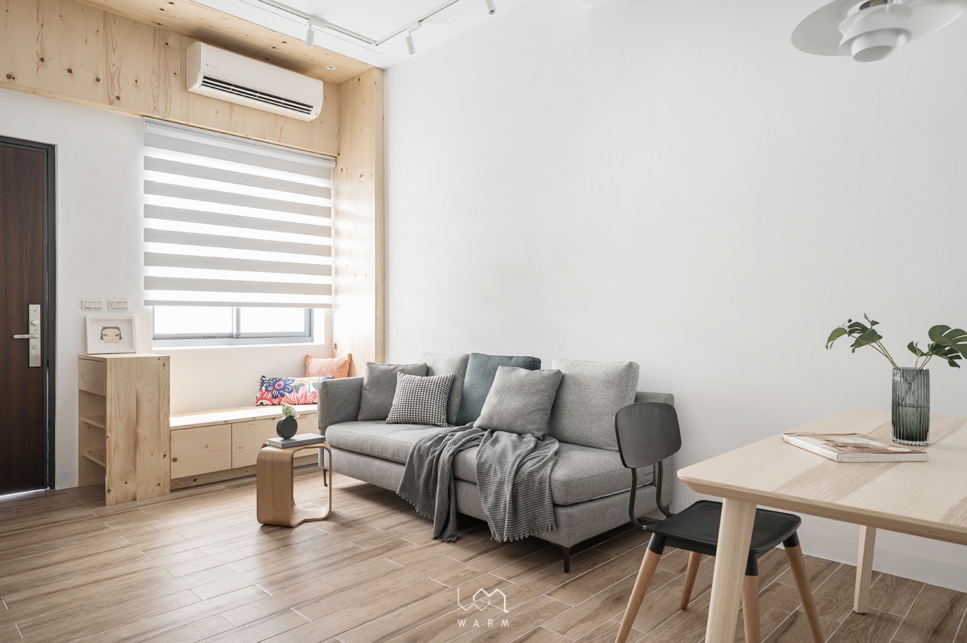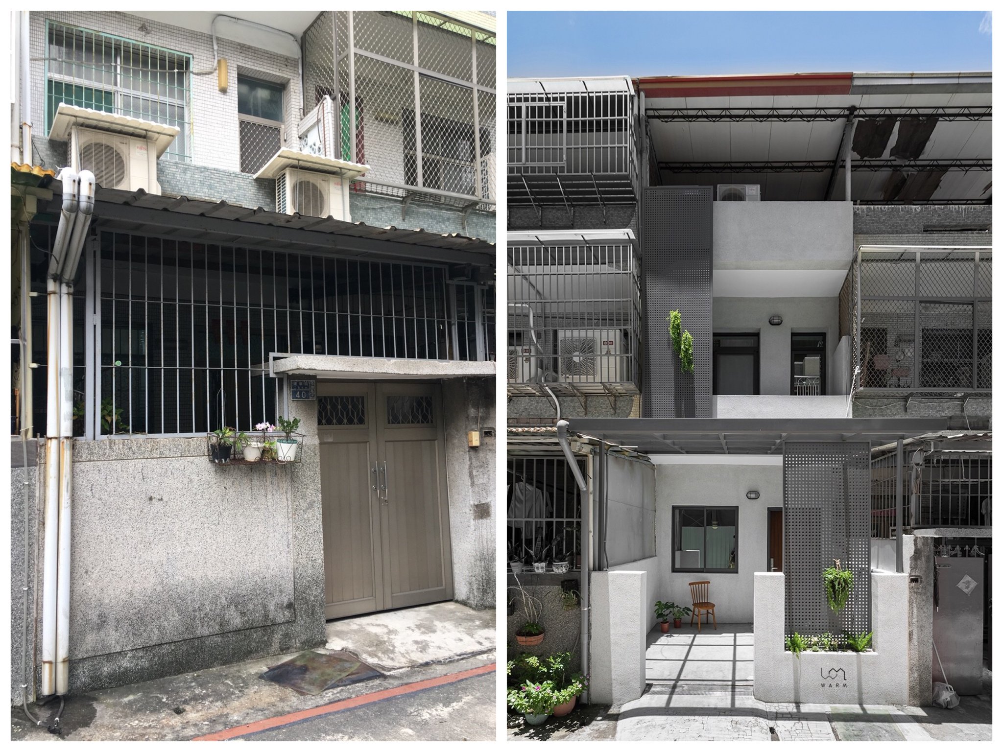 首先位於傳統巷弄中的房屋常常有被兩側房屋遮擋、採光不足的問題,所以設計團隊卸下了封閉的鐵皮和鐵窗,增加前後光線的流動,並以純白和木色的組合打造出溫馨感~