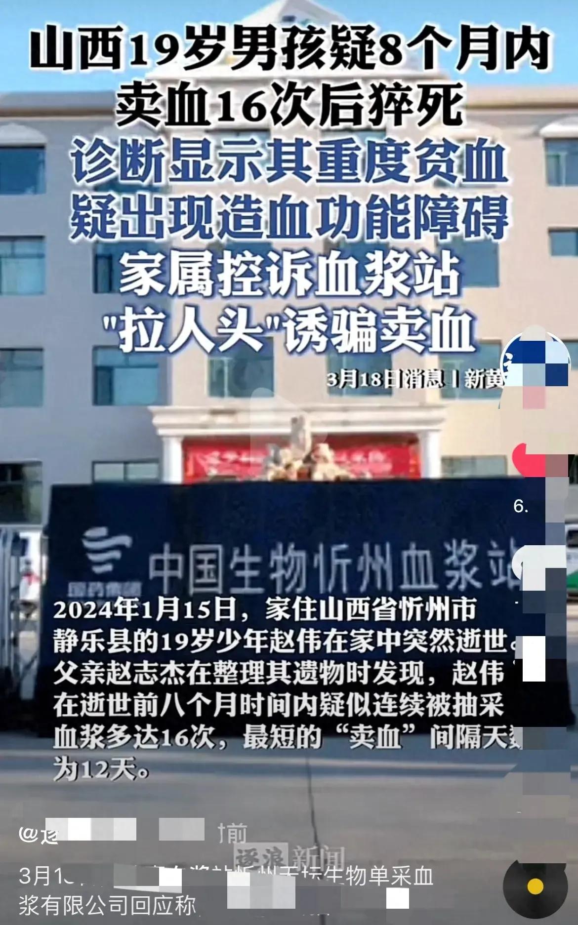 查看兒子手機後,趙父才知道兒子竟到血漿站賣血,在當時認識一名男子,在那之後接觸到「忻州血漿站」,該名男子甚至提供接送服務,每月2次將兒子載去捐血,每捐一次就能收到260元至300元人民幣(約新台幣1145元到1320元)左右的費用,令他感到訝異的是,兒子在猝死10天前也懷疑身體出狀況,自行到醫院檢查,檢查單上顯示他有嚴重貧血,甚至出現造血功能障礙。