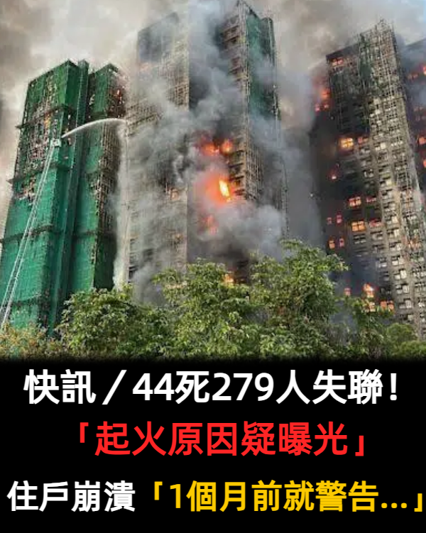 快訊/44死279人失聯!調查出爐「起火原因疑曝光」 住戶崩潰:「1個月前就警告...」