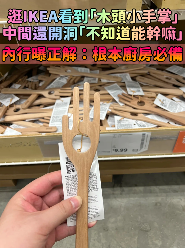 新版愛的小手?他逛IKEA看到「神秘木頭小手掌」中間還開了洞 內行人曝功能:設計師超強 Sabrina 2024-10-29 檢舉 至於手掌中心的洞也不只是裝飾而已哦!有網友指出這個洞是用來測量要煮多少義大利麵的,「麵條豎著放到中間洞裡,放滿正好是兩個人的量」,真的是超實用又方便的設計呀~(圖片來源:IKEA)又學到了一課!!來源:小紅書@獅子氣昂昂 Advertisements 回首頁 2/2 Advertisements 猜你會喜歡 飯店浴室小木凳「在角落多一根」用途是什麼 神網友解答「根本一舉兩得」:超聰明的設計 女友桌上發現「超迷你小衣架」好奇問用途 她一轉頭「路人都呆了」:根本設計天才 編輯精選推薦 More + 在垃圾堆被挖掘!19歲女孩「撿資源回收」意外爆紅 打扮過後「化身181cm國際超模」驚呆所有人 新一是濃眉大帥哥❤️神人「把名偵探柯南角色」全部變真人 小蘭「天使般夢幻藍眼」難怪柯南會愛她 臨時找不到保母!女學生硬著頭皮「帶寶寶去大學上課」 教授霸氣伸手「寶寶我來抱吧」畫面超溫馨 警惕!手機裡最好不要存「4種照片」 小心惹上大麻煩:如果有記得馬上刪掉 不痛不癢!45歲女子「私密處長黃豆大腫塊」 竟是外陰癌「好發於停經婦女」 14歲少女「肚子痛1個月」!醫師開刀「取出長達210公分毛球」:這習慣害的 垃圾變絕美收藏品❤️她把「小小瓶蓋當畫布」繪出風景畫 一出手「黑色蓋子→星空下神社」絕美無比 身高不到1米6!穿裙盡量不要選「這3個長度」 買錯了:既顯矮又顯胖 秋天不要再穿運動鞋!最適合「穿這3款鞋子」優雅氣質又美麗 2026連假出爐!不用補班「請4天連休16天」老闆快哭 網氣罵:「乾脆收一收」 肝癌指數飆破4千!83歲阿嬤「肝癌沒人顧」不肯開刀 天天吃一食物「7個月後腫瘤消失」醫生也看傻 爸媽的PK戰!把拔馬麻「每天比賽幫女兒搭衣服」 一套套甜美穿搭「展現爸爸時尚品味」顛覆想像❤️ 糖尿病友注意!醫警告:不想血糖失控「少碰這5種水果」 他35歲不上班、不結婚!「花16萬改造洞穴」隱居至今 「一踏進去」網友全大開眼界 表兄妹一吻定情!家庭群組發「火辣床吻照」公告戀情 狂言生子「逆轉結局曝光」 很多人都丟錯!衛生紙「包裝袋」不是一般垃圾 環保局「公布正確丟法」:小心收6000元罰單 快訊/5億高中生案定讞!18歲男「同婚後2小時死亡」震驚全台 最新判決出爐「假配偶慘了」 住飯店必看!空姐一進門「秒把水瓶滾到床底下」 詳細一問「竟為了安全自保」浴帽、衣架也有用 家住別墅很氣派!公公戴名錶「婆婆穿18萬的衣服」 進屋後驚見「極品畫面」我奪門而逃 俗語:「入戶見6物,家敗人難富」!不是迷信「會影響宅運和財運」看看你家有嗎? 當紅之際罹癌!台語女歌手「1年後香消玉殞」享年36歲 突因一事「顯靈現身」:驚悚過程曝光 陳喬恩的好友!知名男星「38歲冥誕」父母痛哭:沒當夠你爸媽 苦守9年墓園成粉紅花海 在屋頂上奔跑!磚瓦屋頂上「心型玻璃棧道」與天空相接 高低錯落設計「彷彿飛簷走壁」空拍角度美翻 賦予木頭新生命!藝術家DIY「超逼真動物木雕」驚艷爆紅 巧手臨摹「活靈活現貓頭鷹」兔兔可愛到不行❤️ 比IKEA買的還好用!平凡紙箱「0元化身質感置物櫃」 達人手工打造「貓貓用城堡天堂」同樣精緻到爆