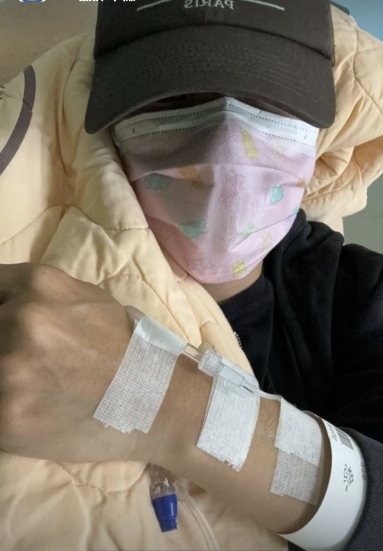 只見圖片上的她,身上蓋著醫院的棉被,手上也正在吊點滴,雖然臉完全被鴨舌帽及口罩遮住,但還是可以感受到虛弱的狀態,引起不少粉絲擔心,並祝福她早日康復,好好休息養身。