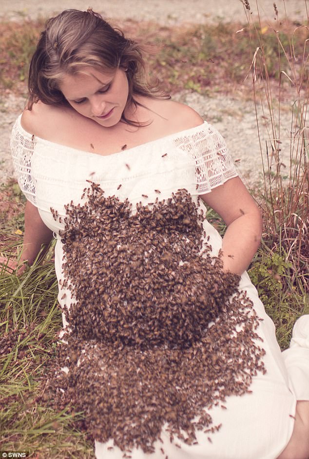 準媽媽「讓2萬隻蜜蜂爬滿孕肚」拍獨特孕婦寫真!預產期前6天「寶寶卻不動了」:只被螫3次...