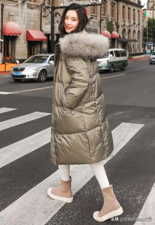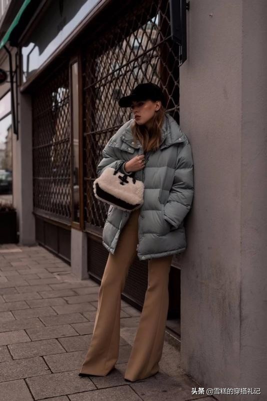 長羽絨服+小腳褲:長款羽絨服帶來視覺上的量感較大,可以選擇小腳褲,打造上松下緊的視覺效果,更加凸顯雙腿的纖細,顯得高級又有氣質,又不失精氣神兒~