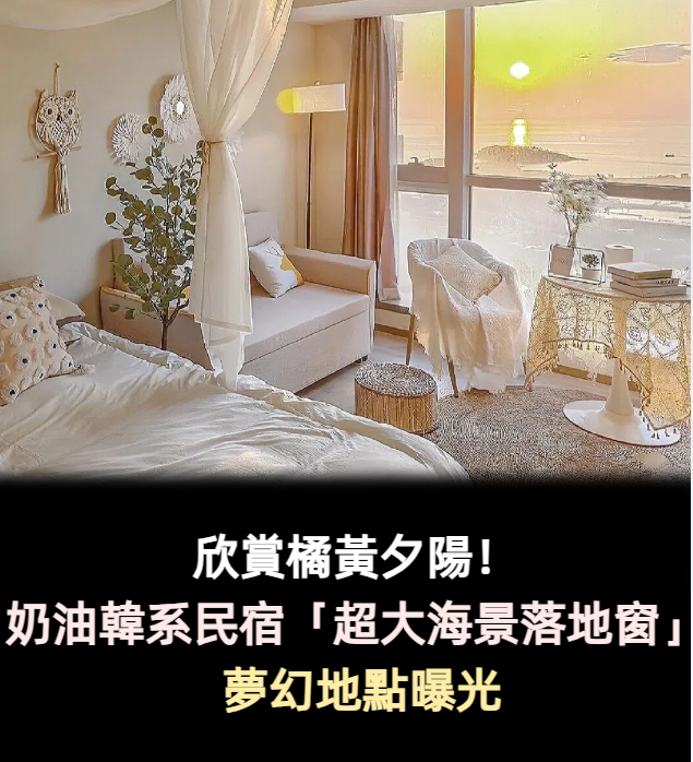 欣賞橘黃夕陽!奶油韓系民宿「超大海景落地窗」景色美翻 「浪漫波西米亞風內裝」還有小廚房❤️