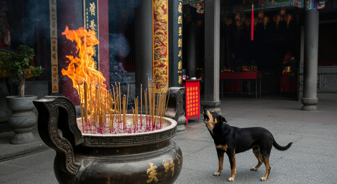 黑狗狂吹狗螺!北斗天后宮「天公爐突然發爐」 廟方清香灰「驚見一大根」當場嚇傻