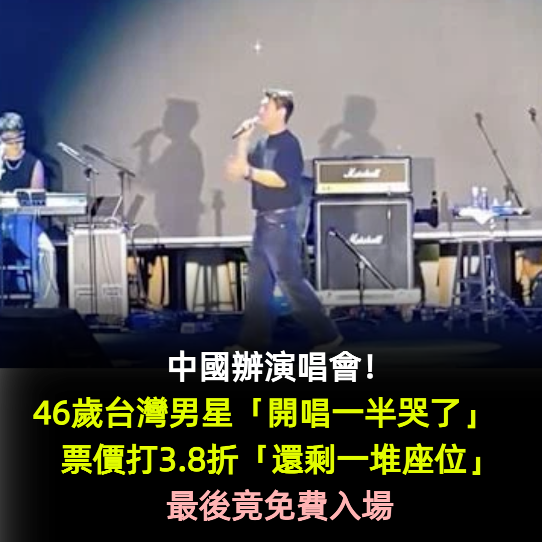 中國辦演唱會!46歲台灣男星「開唱一半哭了」 票價打3.8折「還剩一堆座位」最後竟免費入場