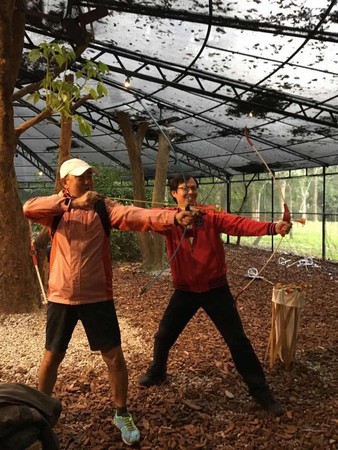 從曝光的照片中可以看到,當天在露營區,隋棠爸爸心情超好,跟著朋友一起拉弓玩射箭,帥氣姿勢100分,也可以從挺拔高大的身材看出,女兒果然是得到真傳啊!