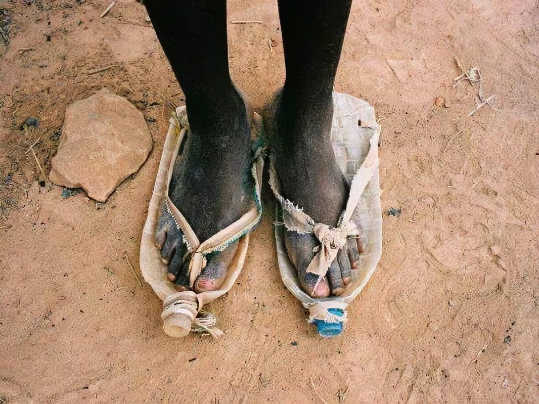 她都是光腳走路的,不然鞋子磨損太快了。很多人連鞋都買不起,只有有錢的才買得起鞋。