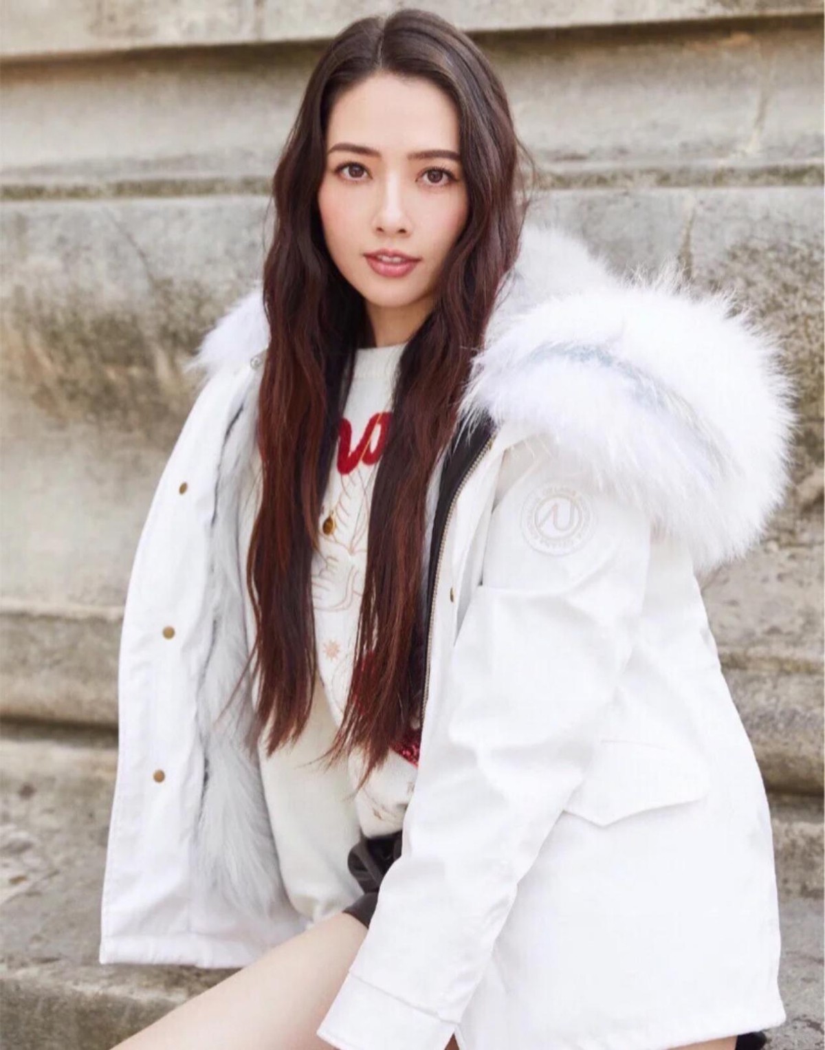 氣質溫婉大氣的郭碧婷,穿上白色的派克服,不僅凸顯出自身的大氣風範,而搭配皮短褲的她,更是自帶颯爽英姿,比起羽絨服來說,派克服的風格屬性太過強烈了。