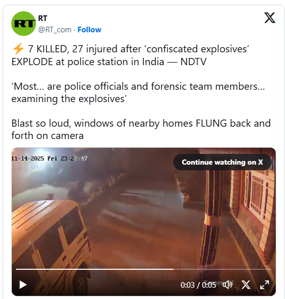 根據《東森新聞》報導,印度再度傳出重大爆炸悲劇!警方在偵辦10日於德里紅堡發生的汽車炸彈攻擊時,14日晚間將查扣的爆裂物帶回警局進行鑑識,豈料這批證物竟在局內突然引爆,熊熊火勢瞬間席捲整棟建築,導致至少9名執勤警員及鑑識專家不幸罹難。