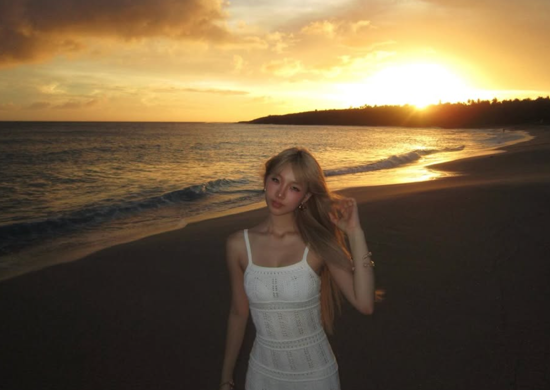 而她的金髮造型也在夕陽照映下更加顯著,整個人宛若仙女般,迷濛又不失氣質,去國外留學後,整個人打扮風格也變得成熟許多。