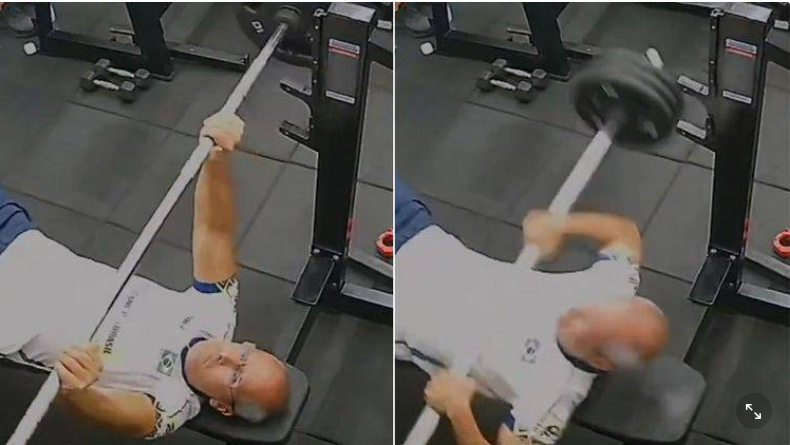 巴西奧林達地區一間博物館的55歲館長蒙特內格羅,日前在常去的健身中心進行臥推訓練時,疑似因雙手未能握穩槓鈴,導致槓片突然滑落並重重砸向他的胸口。